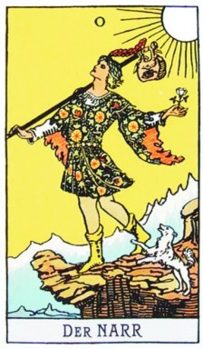Dem Narren kommt im Tarot u. a. die Bedeutung zu, sowohl Anfang als auch Ende der Entwicklung zu sein. Seine Zahl ist die 0: Er kann, wie der Joker im Kartenspiel, für alles und nichts stehen, er läßt sich nicht einordnen, er ist jenseits der Dualität. Im Bewußtsein dieses Poeten des Absurden spiegelt sich die Weisheit der Ungewißheit wider – der Narr kann nicht in die Irre gehen, weil alle Wege die seinen sind (oder weil er gar keinen mehr geht?).